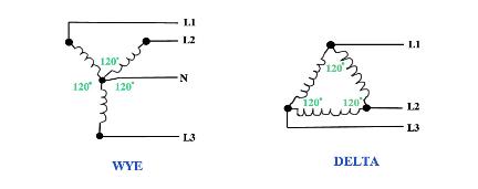 Three phase power is generally available in two basic configurations: WYE and DELTA